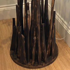 The wood has been fashioned into scorched and petrified wooden 'flames' rising up from the base, which is another waste offcut from the same office buildings . . .